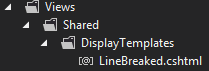 First we create a display template named LineBreaked that renders a string using our extension method.