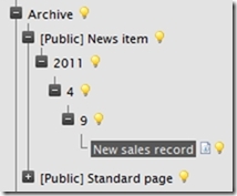 Last week Ted Nyberg, Rouslan Minasian, Marthin Freij and me were discussing different solutions for automatically organizing EPiServer CMS pages in various structures. The most common of which is perhaps the classical news archive where pages are grouped by date, like this: