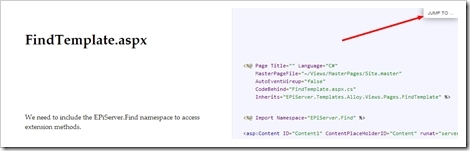 Downloadable and annotated source code for a ready-to-use search page using EPiServer Find.