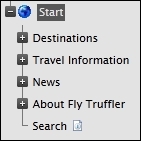 In this tutorial we’ll use a site for fictive company, the airline Fly Truffler. It’s site is straight forward and consists of only a few page types. Most notable are the Standard Page and the Destination page types. The first is used for articles of various kinds, such as travel information and news bulletins. The Destination page type is used to describe the various destinations that the airline flies to.