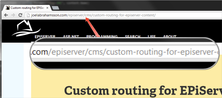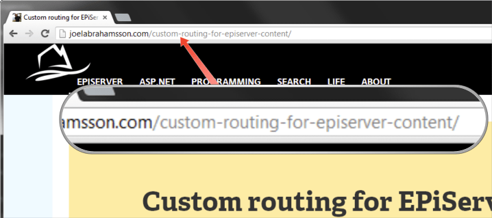 First of all, when modifying both the outbound and inbound routing as in the first example, the one with articles, we're bypassing EPiServer's functionality for ensuring that no two pages can have the same URL. That is, in the example with the articles we'll need to ensure that no two articles have the same URL segment.
