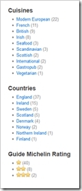 The demo index currently holds information about 70 famous restaurants in different countries. The indexed data includes the restaurants names, addresses and locations, Guide Michelin ratings and the text from their Wikipedia pages. We would have liked to have used a larger volume of data, but trust me when I say that finding suitable data for showing everything from basic text search to filtering to geo search to facets was the hardest part of putting the project together :)